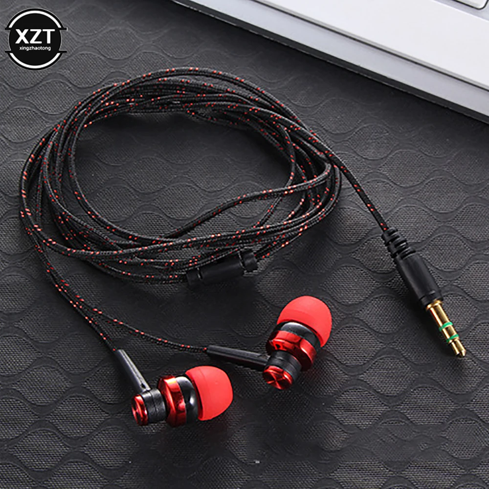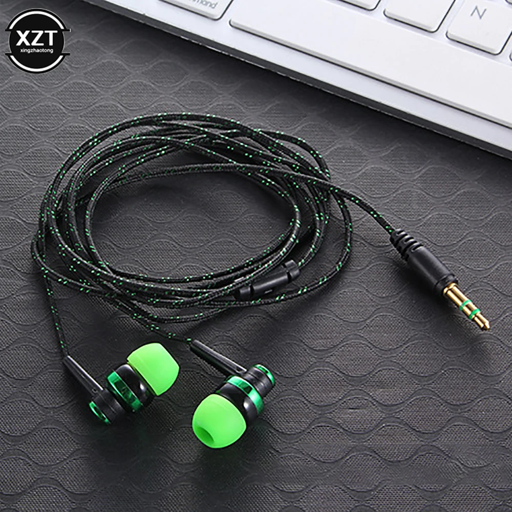 1pc Wired Earphone Stereo In-Ear 3.5mm Nylon Weave Cable Earphone Headset For Laptop Smartphone Gifts Headphones